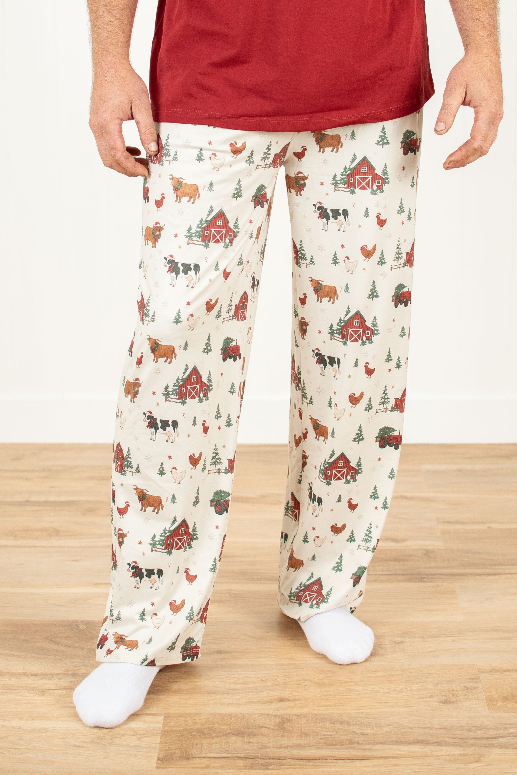Get cozy this holiday season with our Christmas Barns & Animals Adult Pajama Pants. Made from buttery soft. lightweight poly-lycra fabric. these pants offer comfort without the bulk. Adorned with festive barns and adorable animals. they’re perfect for matching the whole family in Christmas cheer. Whether you’re lounging by the fire or wrapping gifts. these pajamas bring playful holiday spirit to every moment.