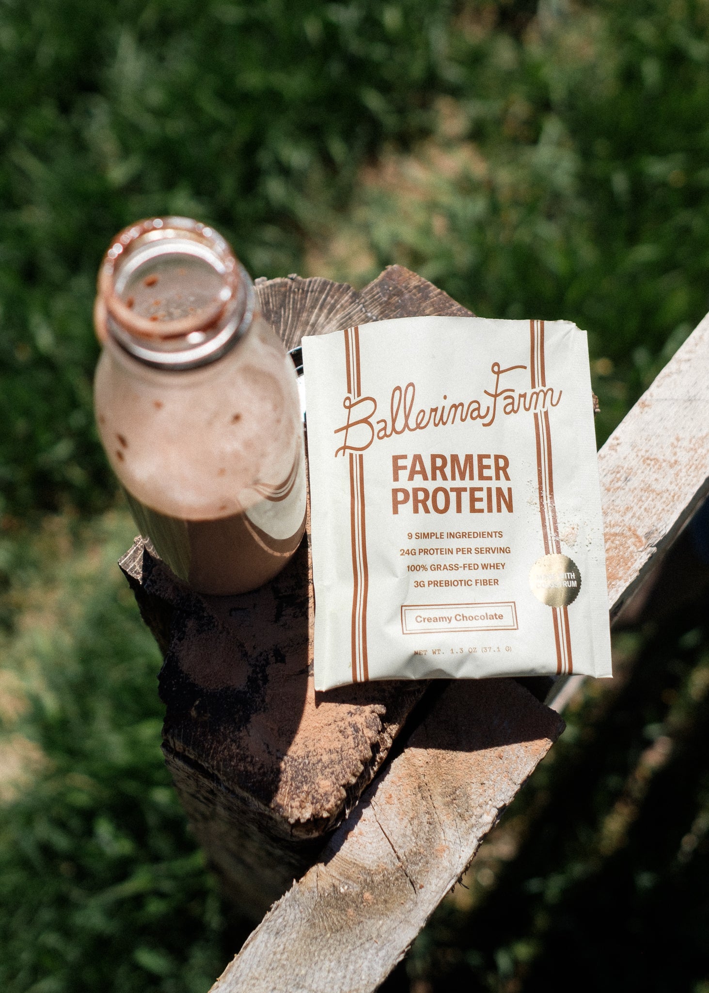 Our Farmer Protein Powder is a clean, nutrient-dense source of protein made from ingredients we trust and use in our own home. Each single-serving pouch contains 24 grams of protein from 100% grass-fed whey, collagen peptides, hemp protein, and calf-first bovine colostrum.