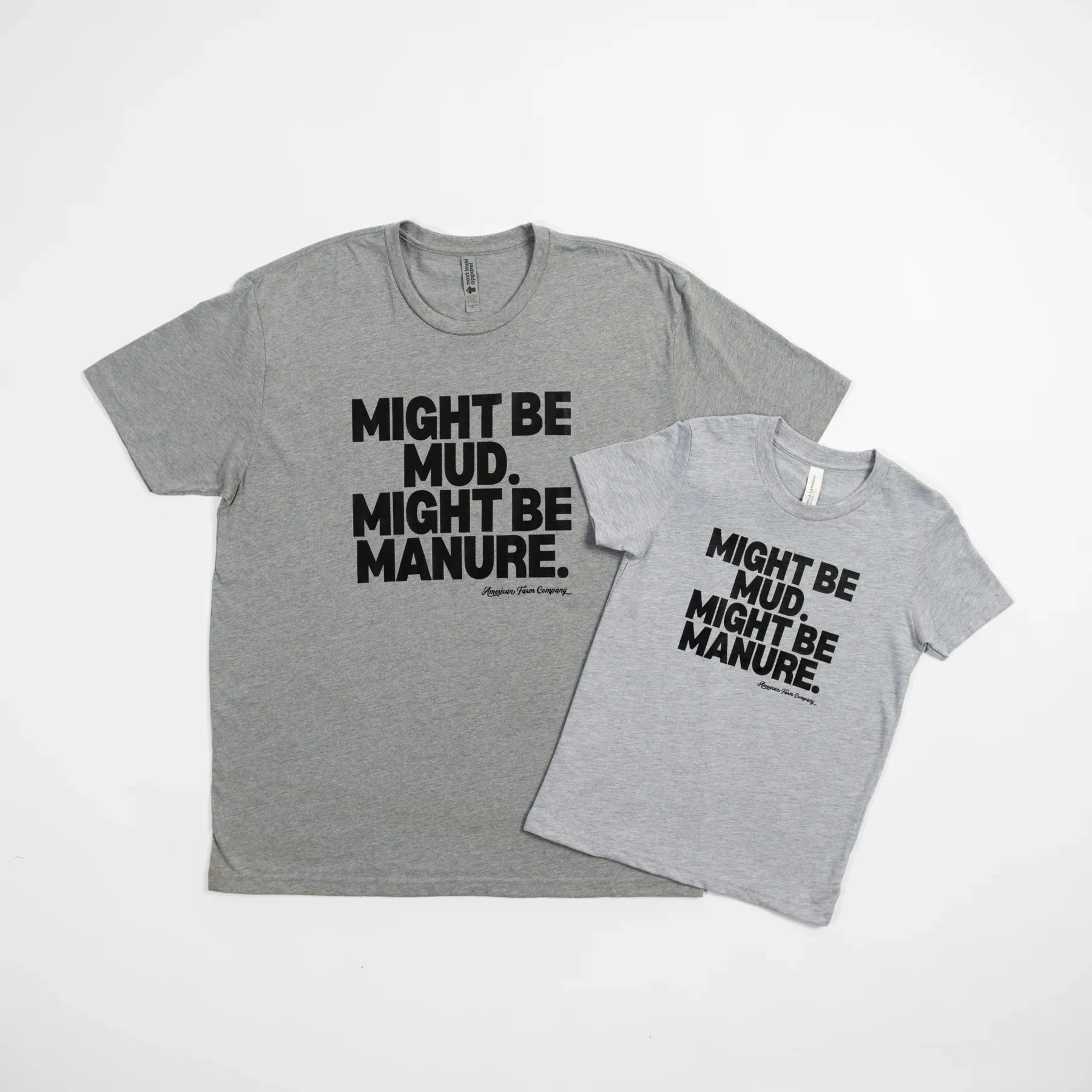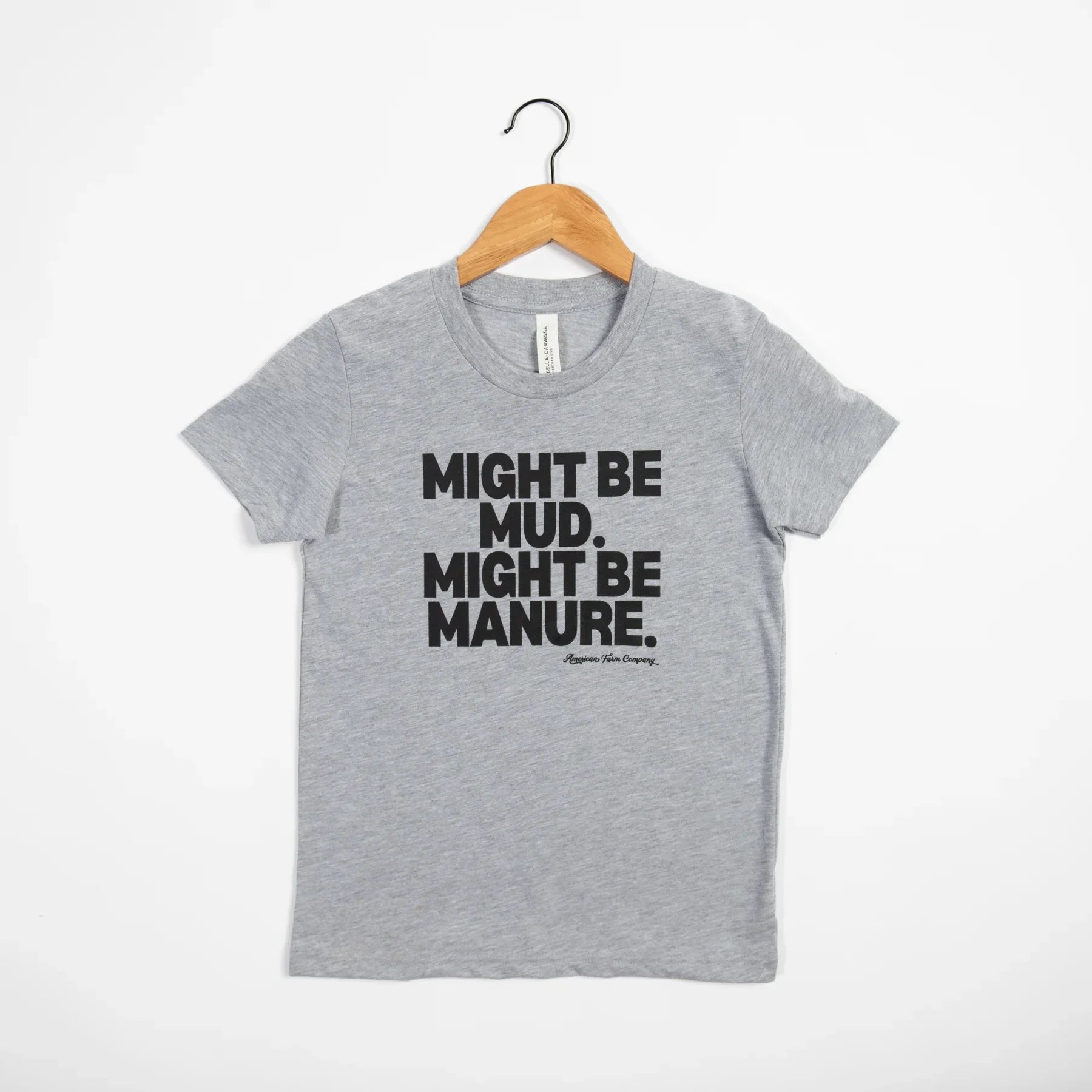 Add some humor to your farm kid’s wardrobe with our Mud or Manure Toddler/Youth Tee. Embrace the dirt and manure while working on the farm in this comfortable and durable heather grey Bella Canvas tee. Perfect for those who love farm life and aren’t afraid to get their hands dirty!