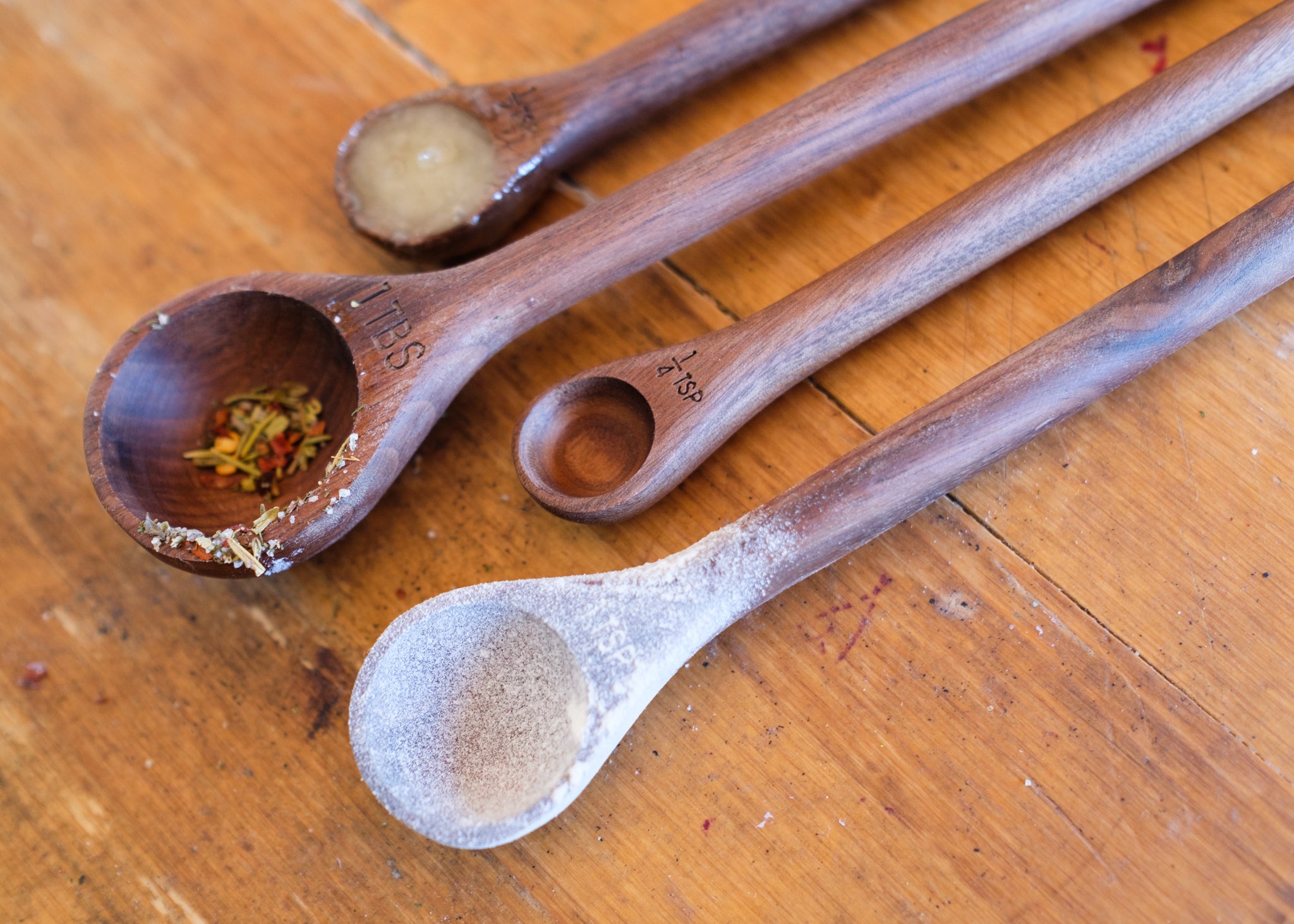 A kitchen staple that we’ve been searching for, our wooden measuring spoons made of unfinished walnut are the perfect measuring multi-tasker! A set of 4 with charming, round heads, and just the right length to scoop out of your favorite jars without spilling.